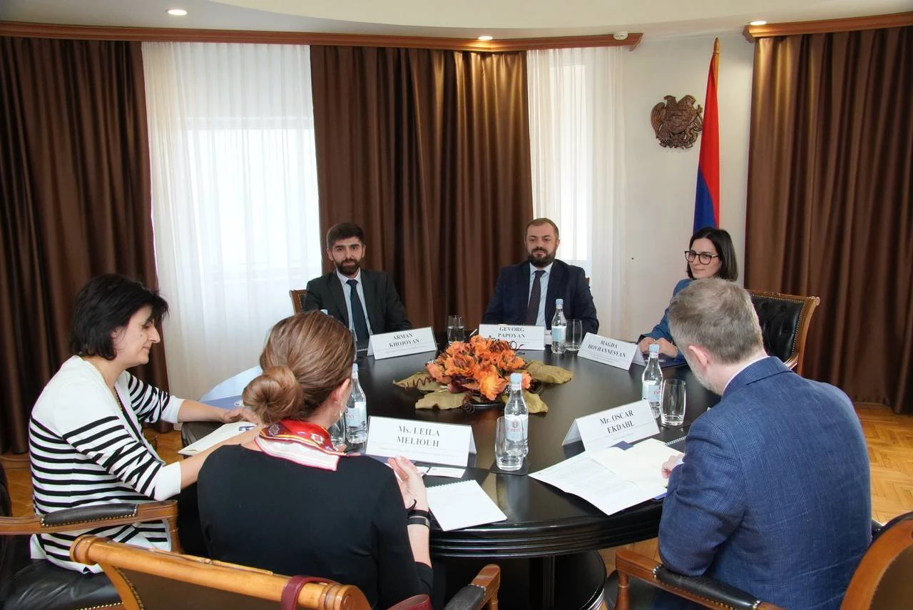 On October 9, RA Minister of Economy Gevorg Papoyan received a delegation led by the newly appointed UN Food Program (PFC) Director Leyla Meli. Deputy Minister Arman Khojoyan was also present at the meeting.