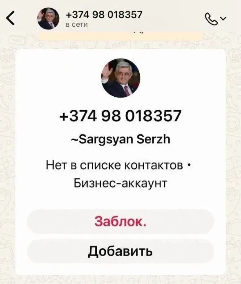 Un autre faux compte a été créé sur WhatsApp au nom de Serzh Sargsyan, le troisième président de la RA.