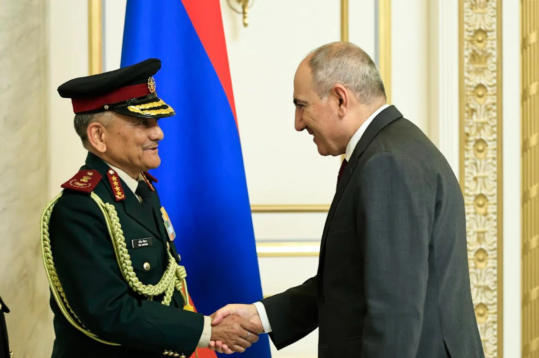 Le Bureau du Premier ministre de la République d'Arménie rapporte que le Premier ministre Nikol Pashinyan a reçu en visite officielle la délégation conduite par le général Anil Chauhan, chef d'état-major des forces armées indiennes en République d'Arménie.