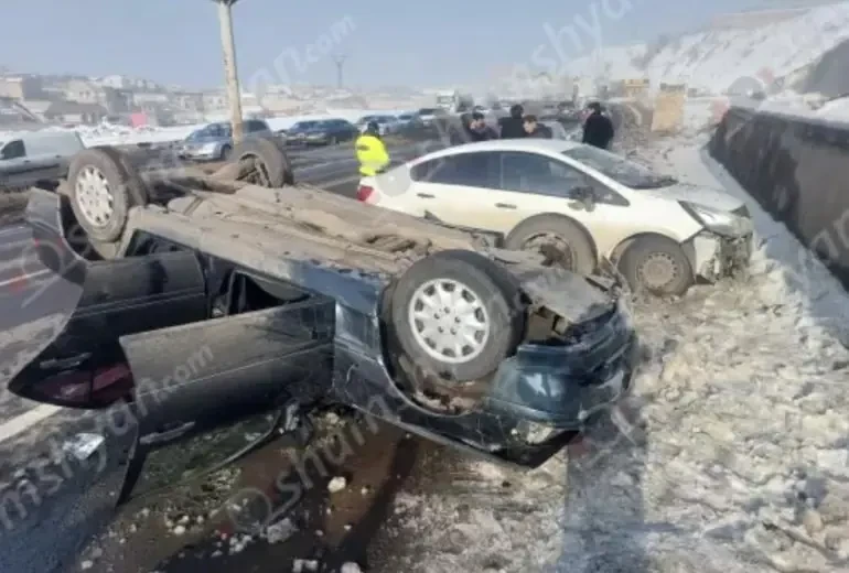 Բախման հետևանքով «Mercedes»-ներից մեկը գլխիվայր շրջվել է, իսկ ավտոմեքենաներից մեկն էլ դուրս է եկել երթևեկելի գոտուց, փլուզել քարե պաշտպանիչ պարիսպը։