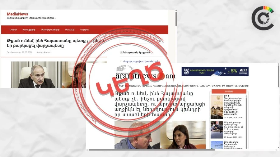 Նույն բովանդակությամբ ապատեղեկատվություն տարածվել է նաև Araratnews լրատվականով:
