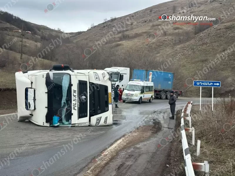 Խոշոր ավտովթար՝ Սյունիքի մարզում․ իրանցի վարորդը բեռնատարով կողաշրջվել է և մասամբ փակել ճանապարհը