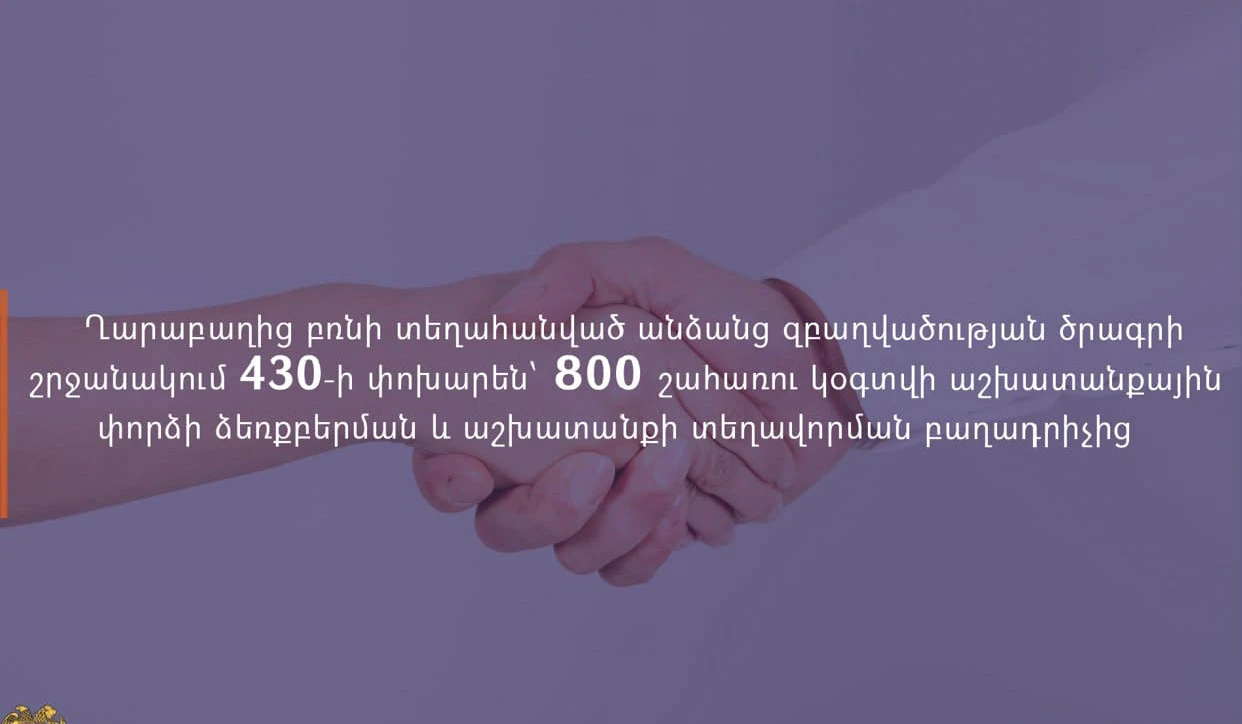 سيستفيد 800 مستفيد تم ترحيلهم من ناغورنو كاراباخ من اكتساب الخبرة العملية وعنصر التوظيف