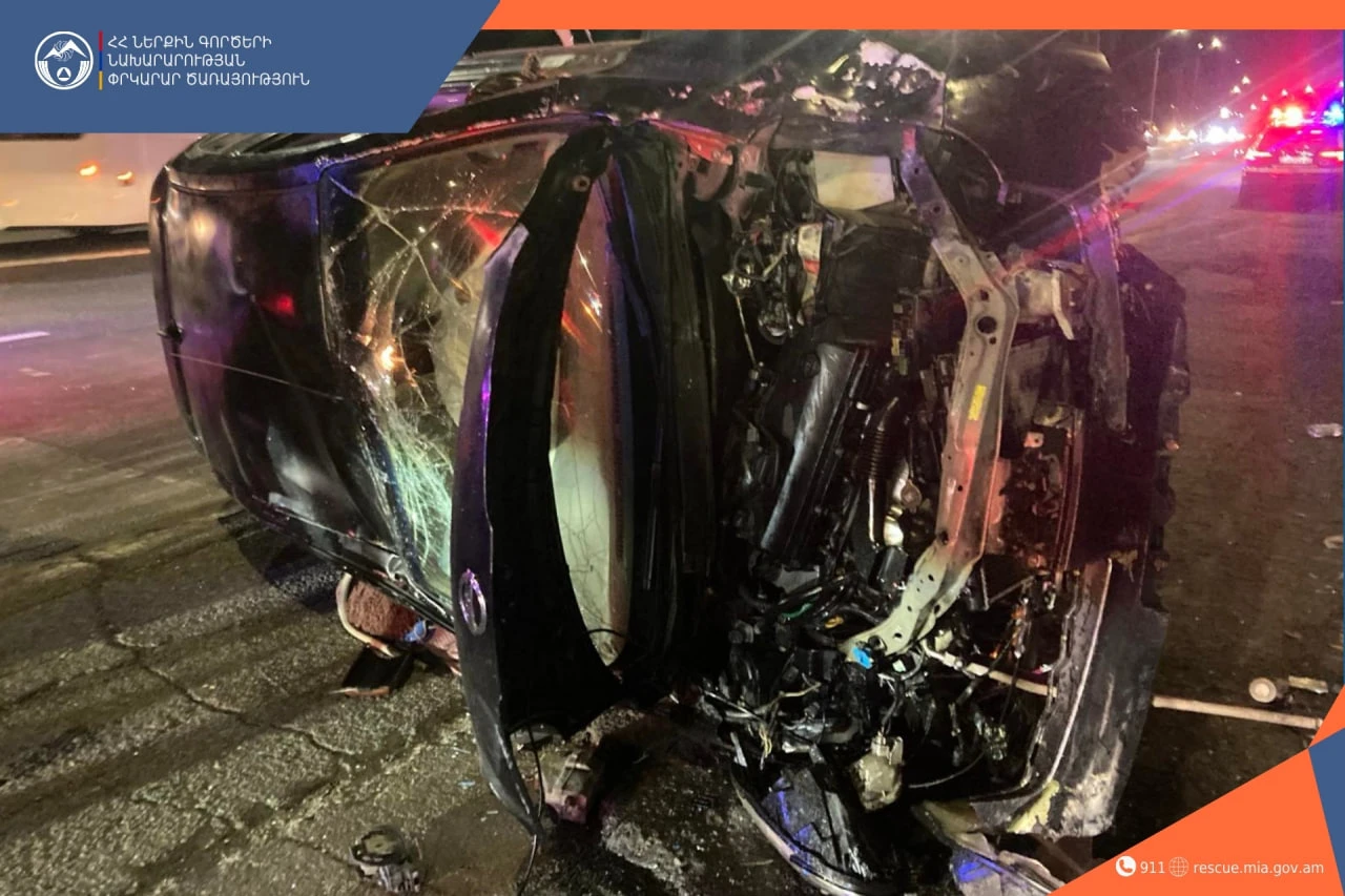 À Erevan, le conducteur de 18 ans s'est heurté à "Nissan" au mur de pierre. Il y a des blessés