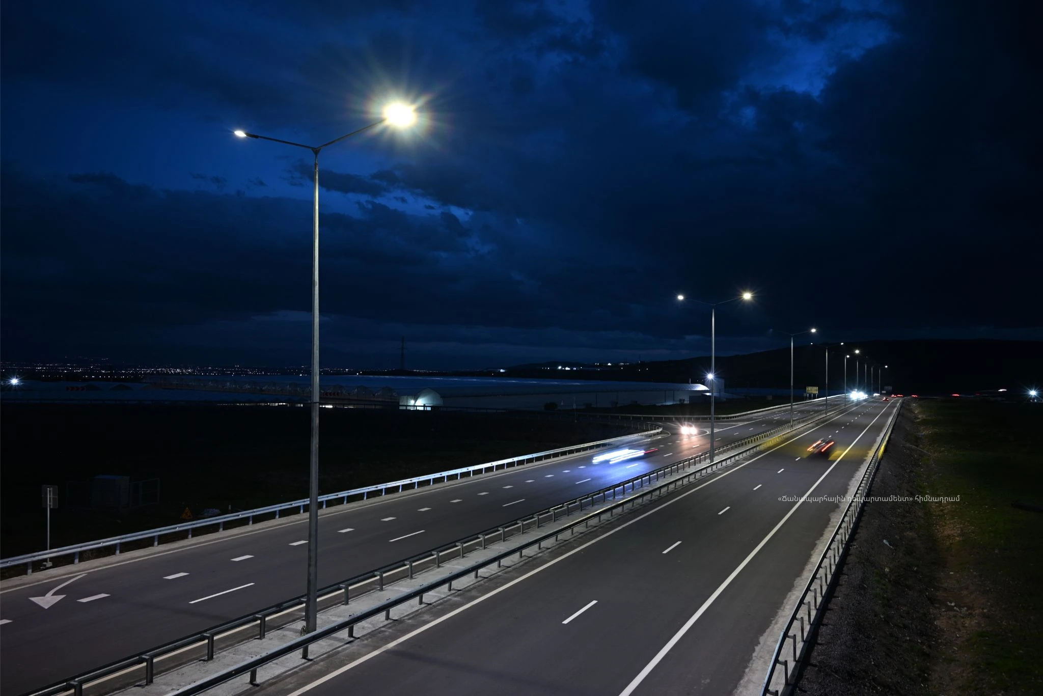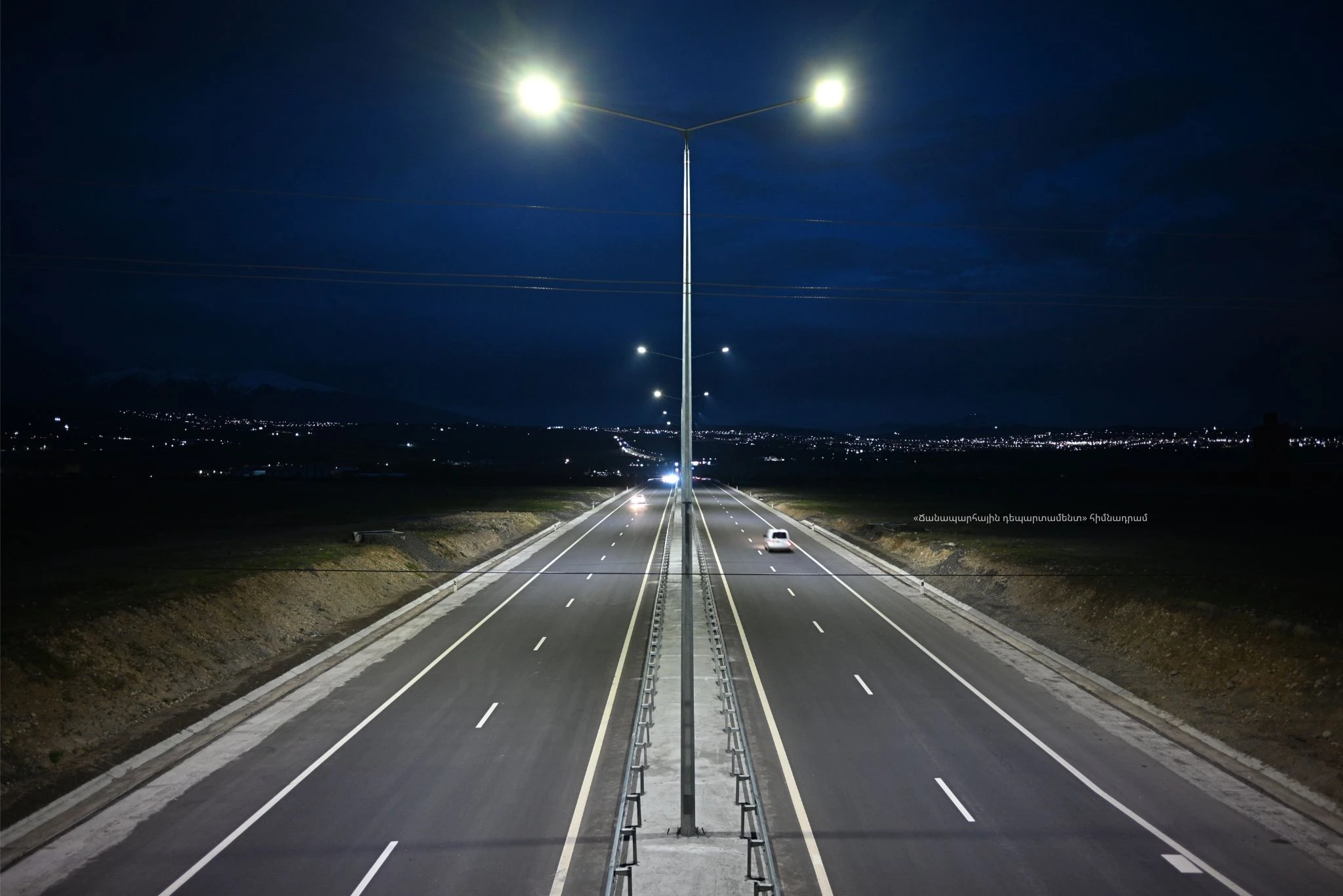 La fondation « Département des routes » informe que les carrefours de transport du tronçon Ashtarak-Gyumri de la route Nord-Sud sont équipés d'un éclairage nocturne.