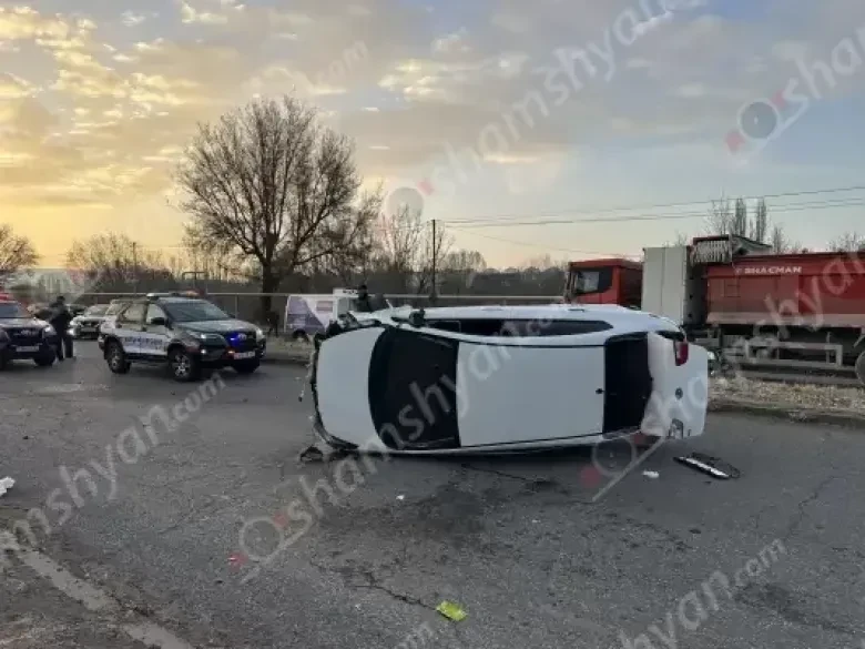 Երևանում բախվել են «Ford Fusion»-ը և «Nissan X-Trail»-ը․ վերջինը գլխիվայր շրջվել է, իսկ «Ford Fusion»-ը բախվել է բազալտե եզրաքարերին և բենզալցակայանի երկաթե արգելապատնեշին