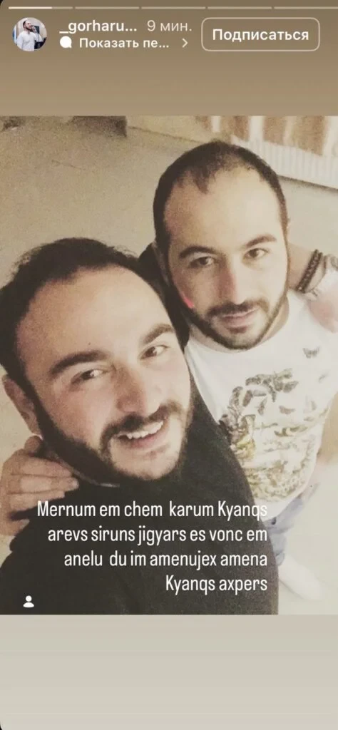 «Դերասան Գոռ Հարությունյանը իր ինստագրամյան էջի Story բաժնում ցավալի հրապարակում է արել՝ հաստատելով եղբոր՝ երգիչ Գագիկ Հարությունյանի մահվան մասին լուրը։