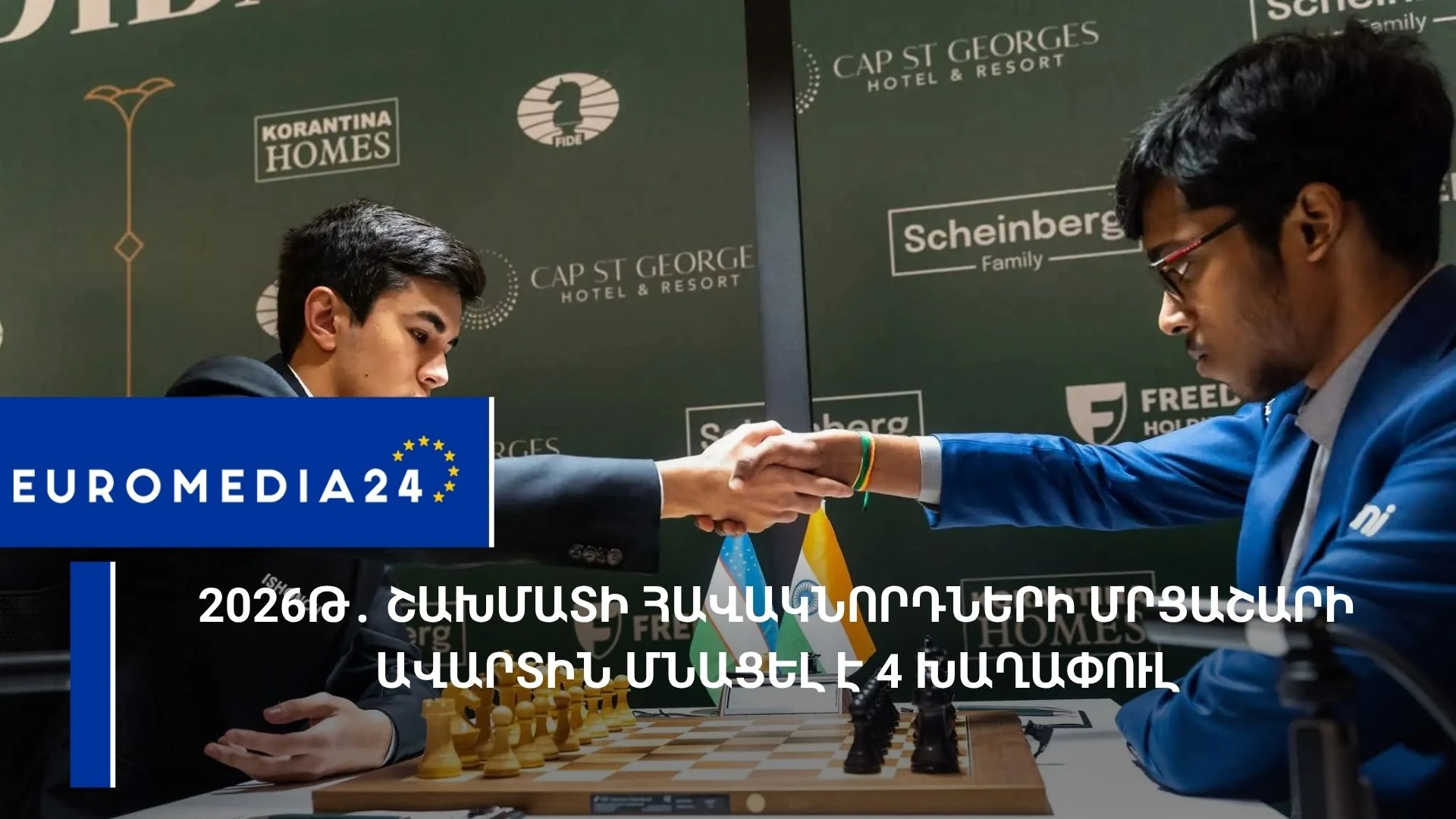 Կիպրոսի Պեյա քաղաքում ընթացող 2026 թվականի շախմատի հավակնորդների մրցաշարի ավարտին մնացել է 4 խաղափուլ: Այդ մասին հայտնում են ՀՀ շախմատի ֆեդերացիայից։