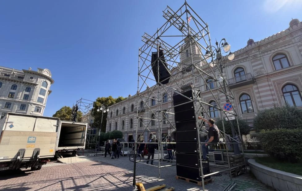 舞台和声音设备的金属结构安装在自由中心议会附近的自由萨克雷布鲁中心。警察不会干扰舞台的安装。