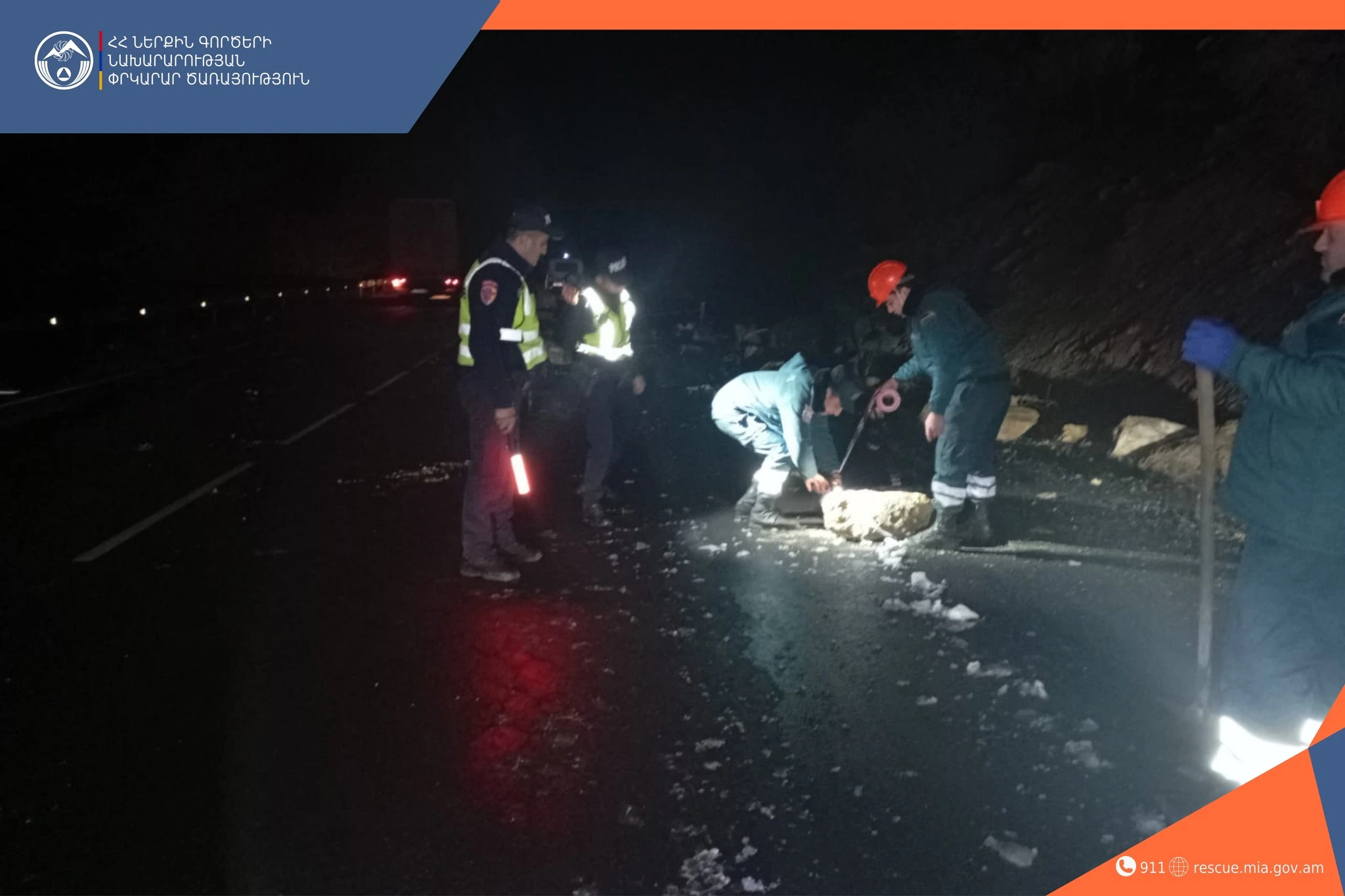 埃里温-梅格里高速公路上有岩石掉落。汽车被损坏