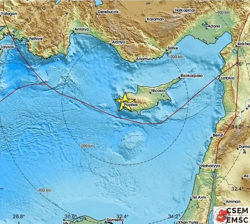 وفي الساعة 18:23 بتوقيت يريفان، وقع زلزال بقوة 5.3 درجة في الجزء الغربي من قبرص. وكتب ليفون عزيزيان، مدير مركز الأرصاد الجوية الهيدرولوجية والرصد، عن ذلك على صفحته بموقع فيسبوك، في إشارة إلى المركز الأوروبي المتوسطي لرصد الزلازل (EMSC).