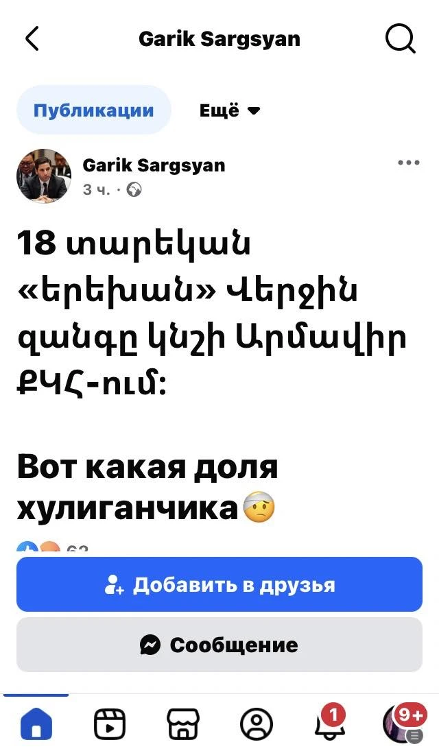 C'est le sort d'un voyou."écrire» est le chef de la communauté Vedi, Garik Sargsyan, faisant référence à Davit Minasyan, 18 ans, qui a été détenu pendant 2 mois par décision du tribunal aujourd'hui et transféré à la prison « Armavir ».
