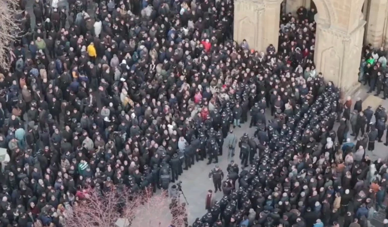 Մայր Աթոռի բակը բազմամարդ է. մի կողմում Վեհափառի աջակիցներն են, մյուսում՝ նրա հեռացումը պահանջողները: Այս պահին քաղաքական-հասարակական մի շարք ներկայացուցիչներ, Վեհափառին աջակցող մարդիկ գտնվում են Մայր Աթոռում: