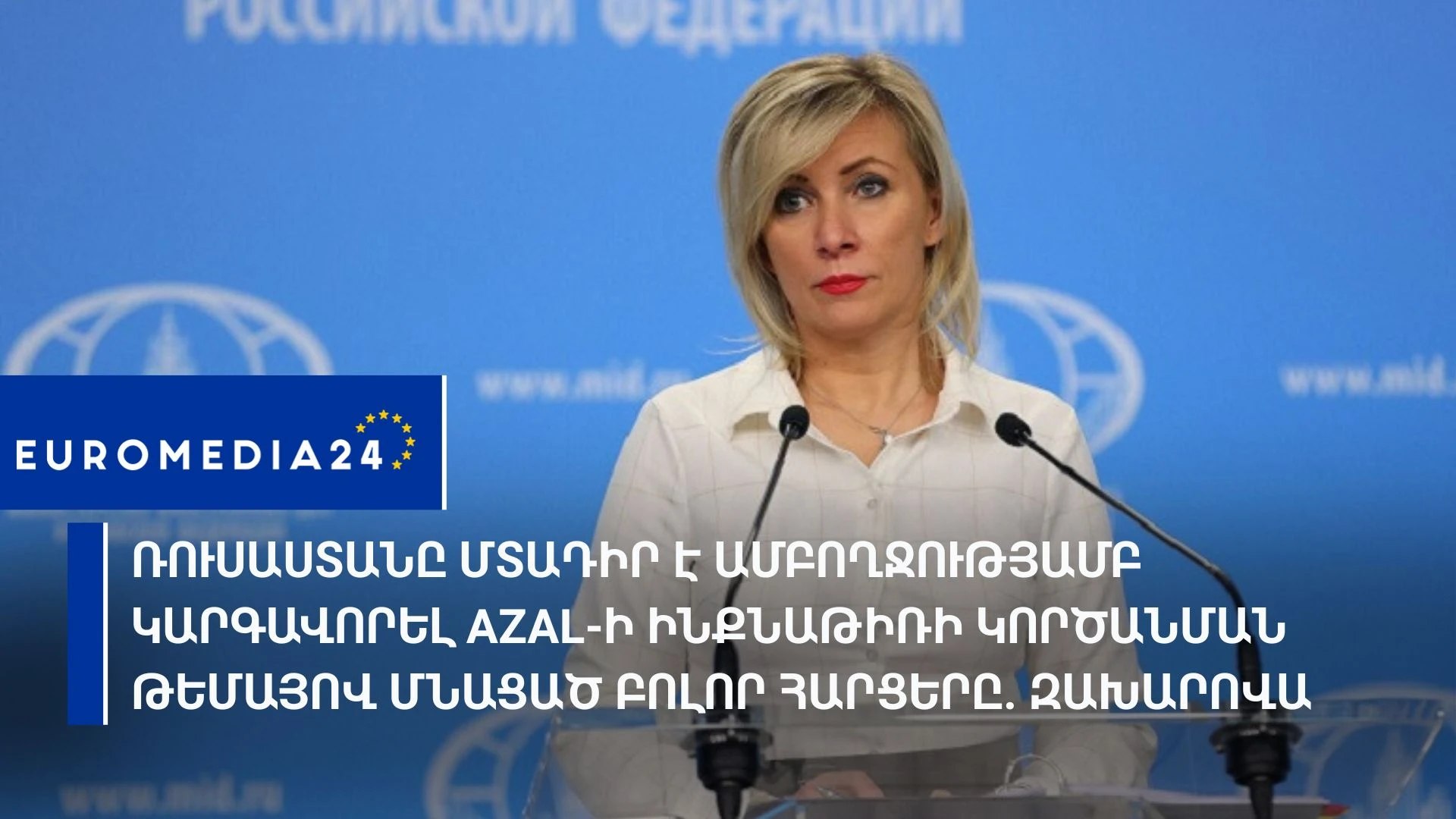 Ռուսաստանը մտադիր է ամբողջությամբ կարգավորել «Ադրբեջանական ավիաուղիների» ինքնաթիռի կործանման թեմայով մնացած բոլոր հարցերը՝ հայտարարել է Ռուսաստանի արտգործնախարարության պաշտոնական ներկայացուցիչը: