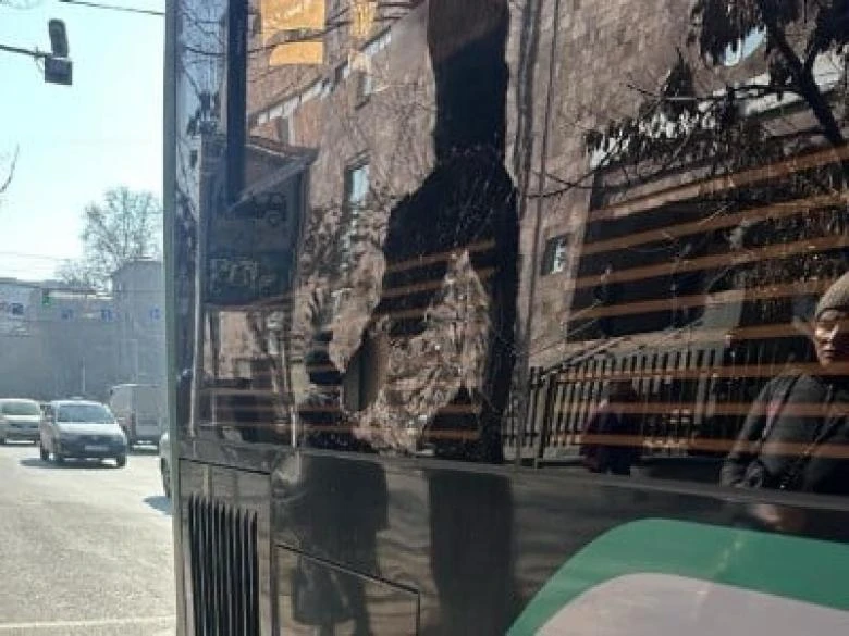 An unknown person hit the bus with stone in the Komitas-Vagharshyan crossroads