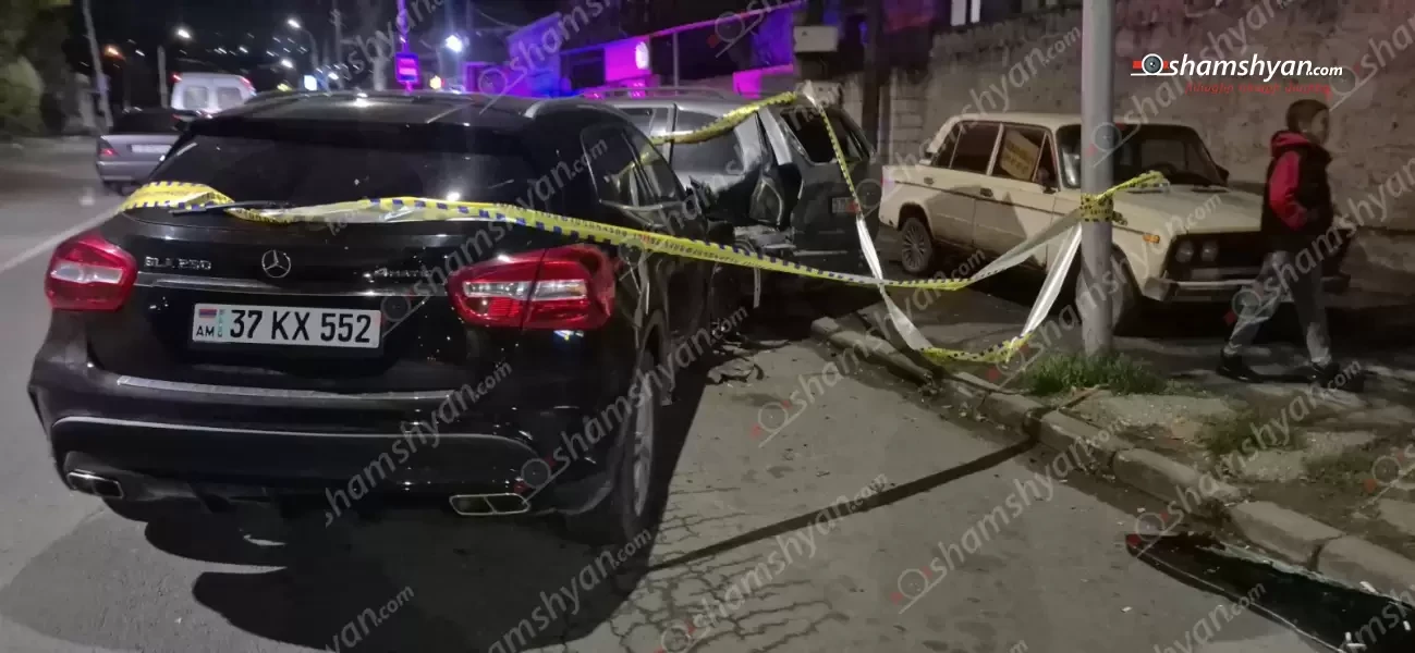 Major car accident in Yerevan. The car broke the cap, appeared on the sidewalk. There is an injured