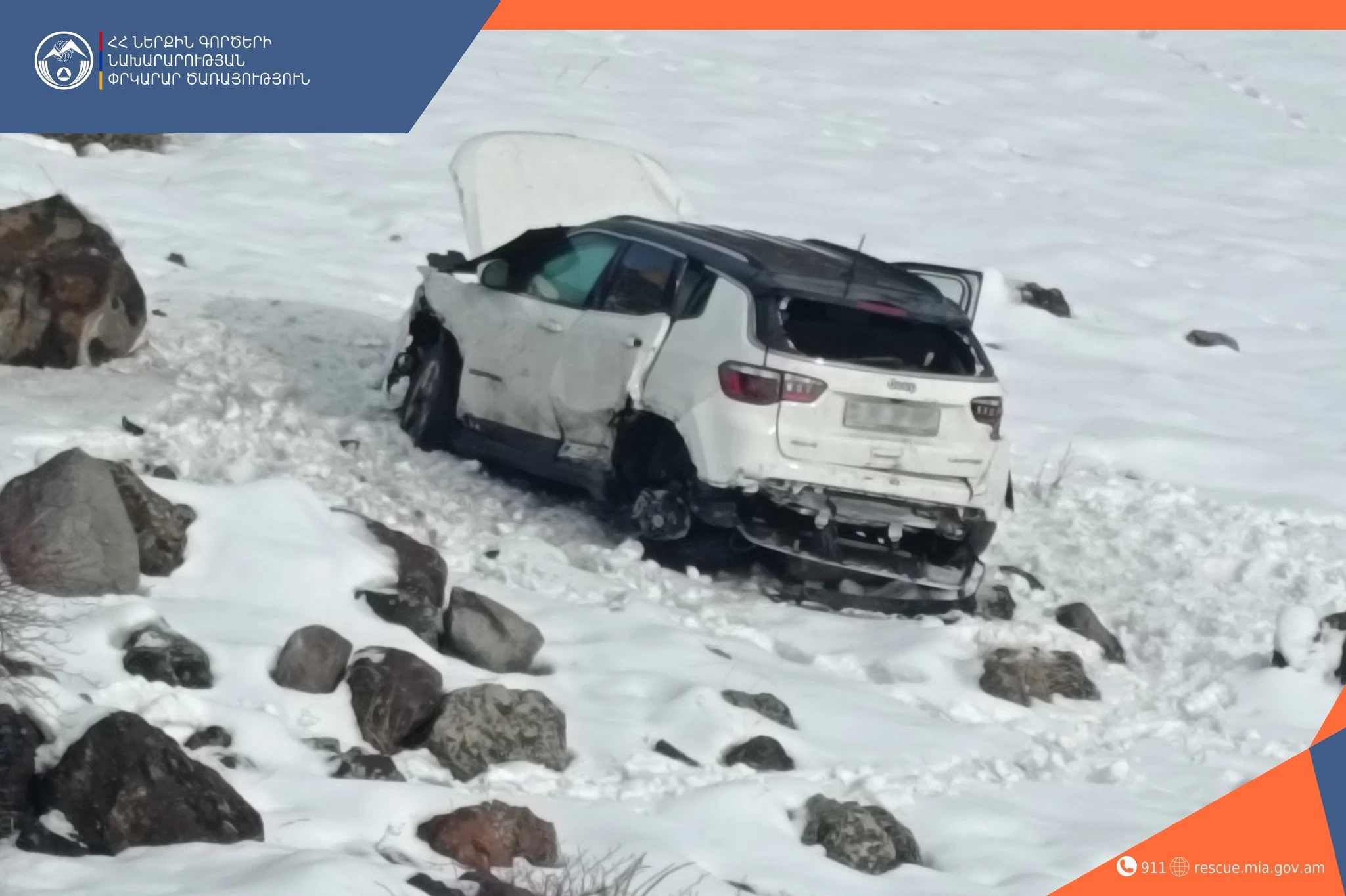 Le 1er février, à 14h14, le centre de gestion de crise du département régional de secours de Kotayk a reçu des informations selon lesquelles un accident s'était produit près du 21e km de l'autoroute Erevan-Sevan. l'aide des sauveteurs est nécessaire.