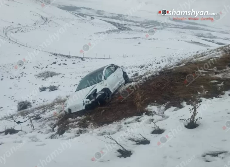 Երևան-Գյումրի ավտոճանապարհին մերկասառույցի պատճառով «Ford Transit»-ը հայտնվել է ձնակույտերի մեջ, ապա «Mercedes Vito»-ն բшխվել է «Ford Transit»-ին