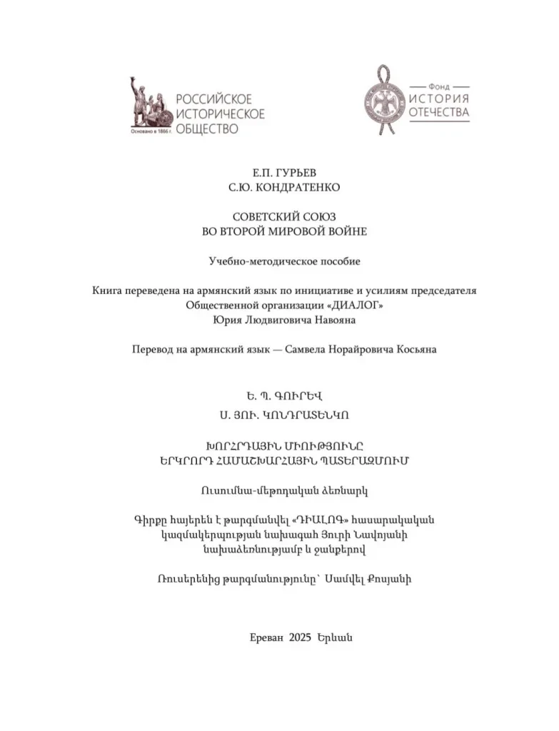 Символическим и содержательным завершением мероприятий, посвященных 80-летию Великой Победы, для организации «ДИАЛОГ» стал перевод на армянский язык учебно-методического пособия «Советский Союз во Второй мировой войне».