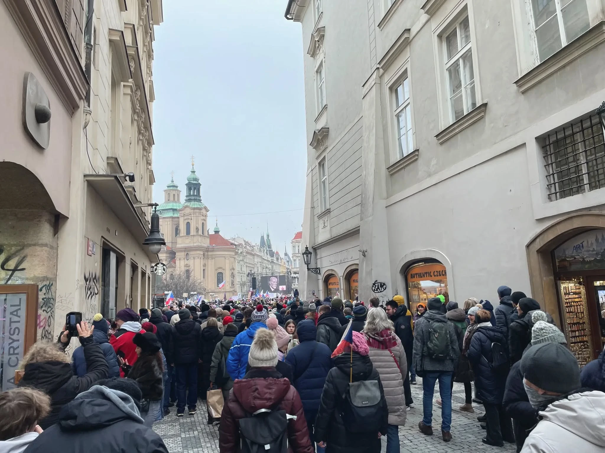 Демонстрантов, не поместившихся на Староместской площади, перенесли на Вацлавскую площадь.