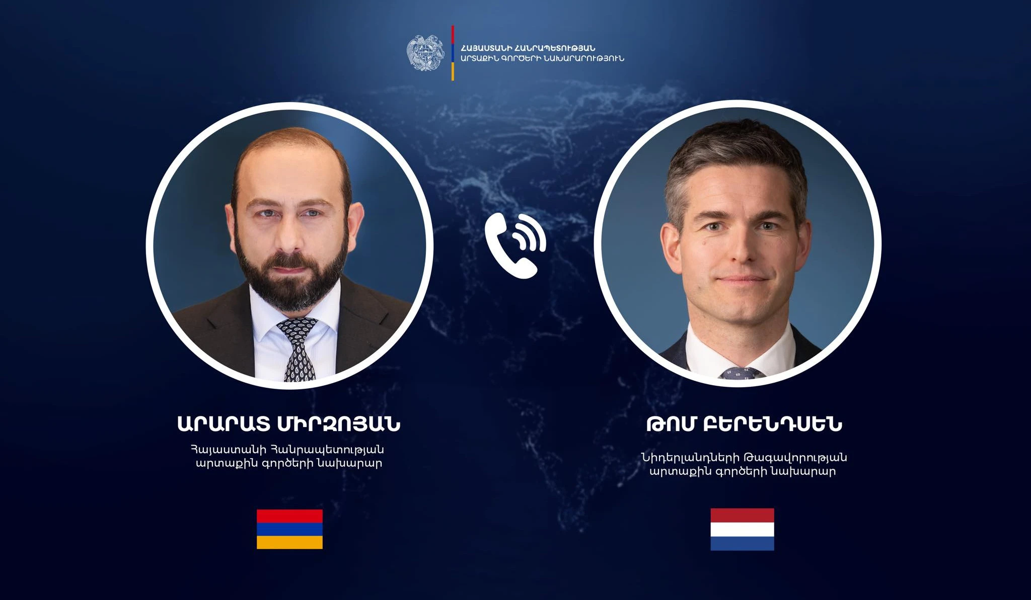 Министры иностранных дел РА и Нидерландов обсудили работы, направленные на обогащение повестки стратегического партнерства между двумя странами.